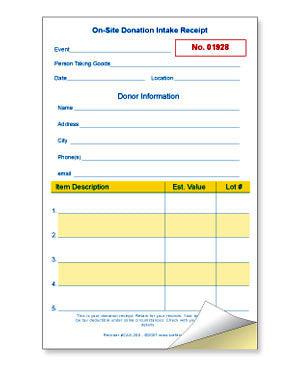 On-Site Numbered Donation Intake Receipts (25/Pack) 2 or 3-Part