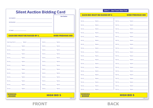 100 Silent Auction Full Page Bid Sheets (8-1/2" x 11") 2-Part